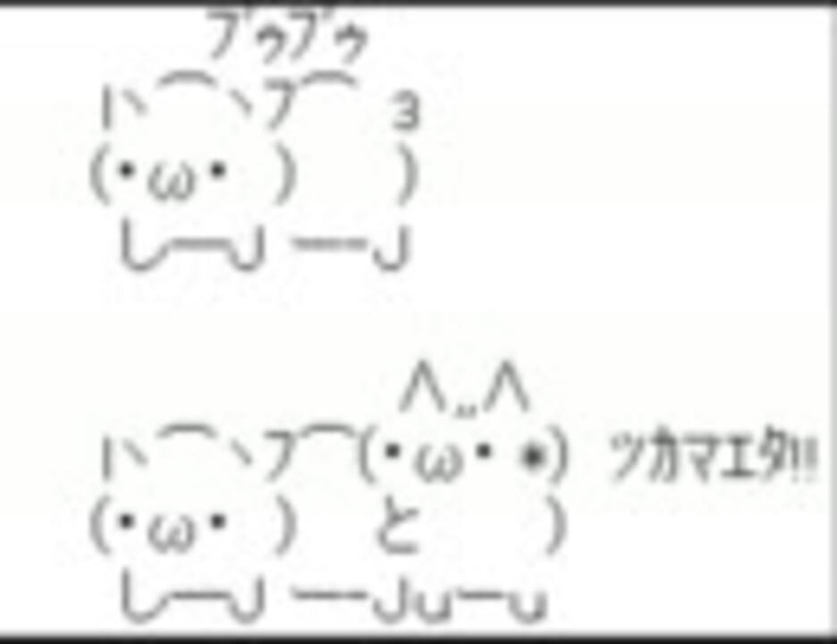 aaとして成り上がるため、スレを巡る旅をしています。 f'´ r'^ ̄ ̄ ̄``> ) `'+、二二二二´ ‐'^メニュートップ > かわいい ※スマホの場合は機種毎のテキストコピーでコピーする必要があります。 ※ms pゴシックのフォントがインストールされていないスマホやpcではaaがずれて表示されます、顔文字のメンバーはこんなコミュニティにも参加しています 星印の数は、共通して参加しているメンバーが多いほど増えます。 I LOVE AA!